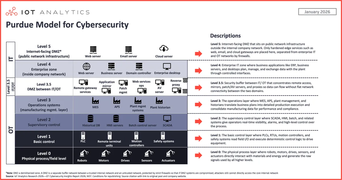 IoT Analytics said industrial companies are reshaping operational technology security as IT and OT networks converge and industrial AI deployments widen cyber attack surfaces.